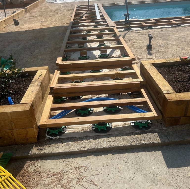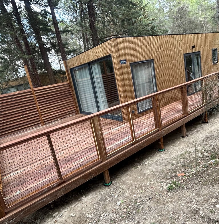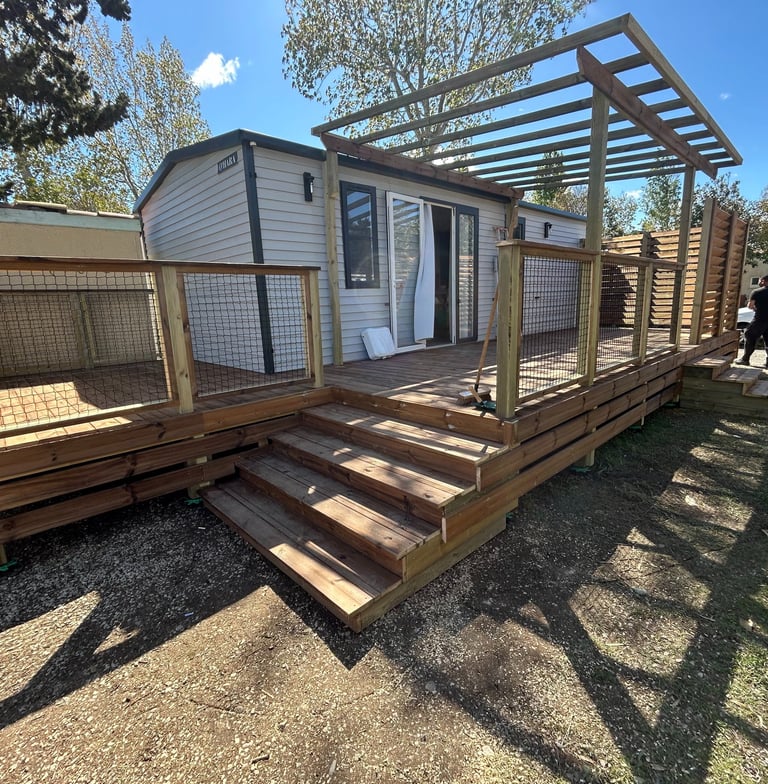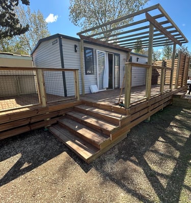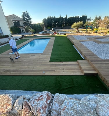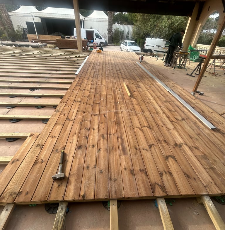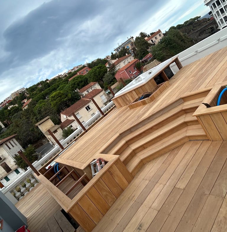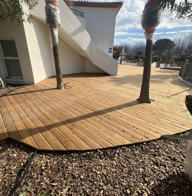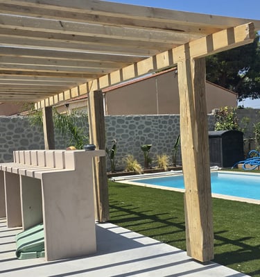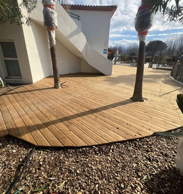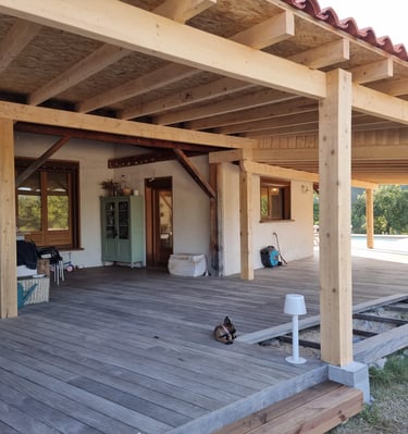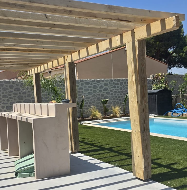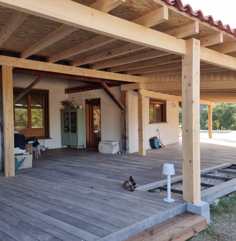 Situés à seulement 30 minutes de Perpignan, nous intervenons en région Occitanie et partout en France pour concrétiser vos idées d’aménagements extérieurs : terrasses, charpentes, pergolas et structures bois personnalisées.